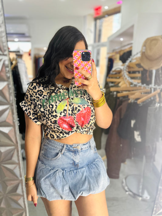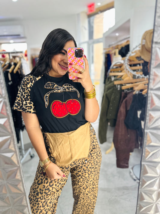 Sold outANIMAL PRINT WITH CHERRIES TOP