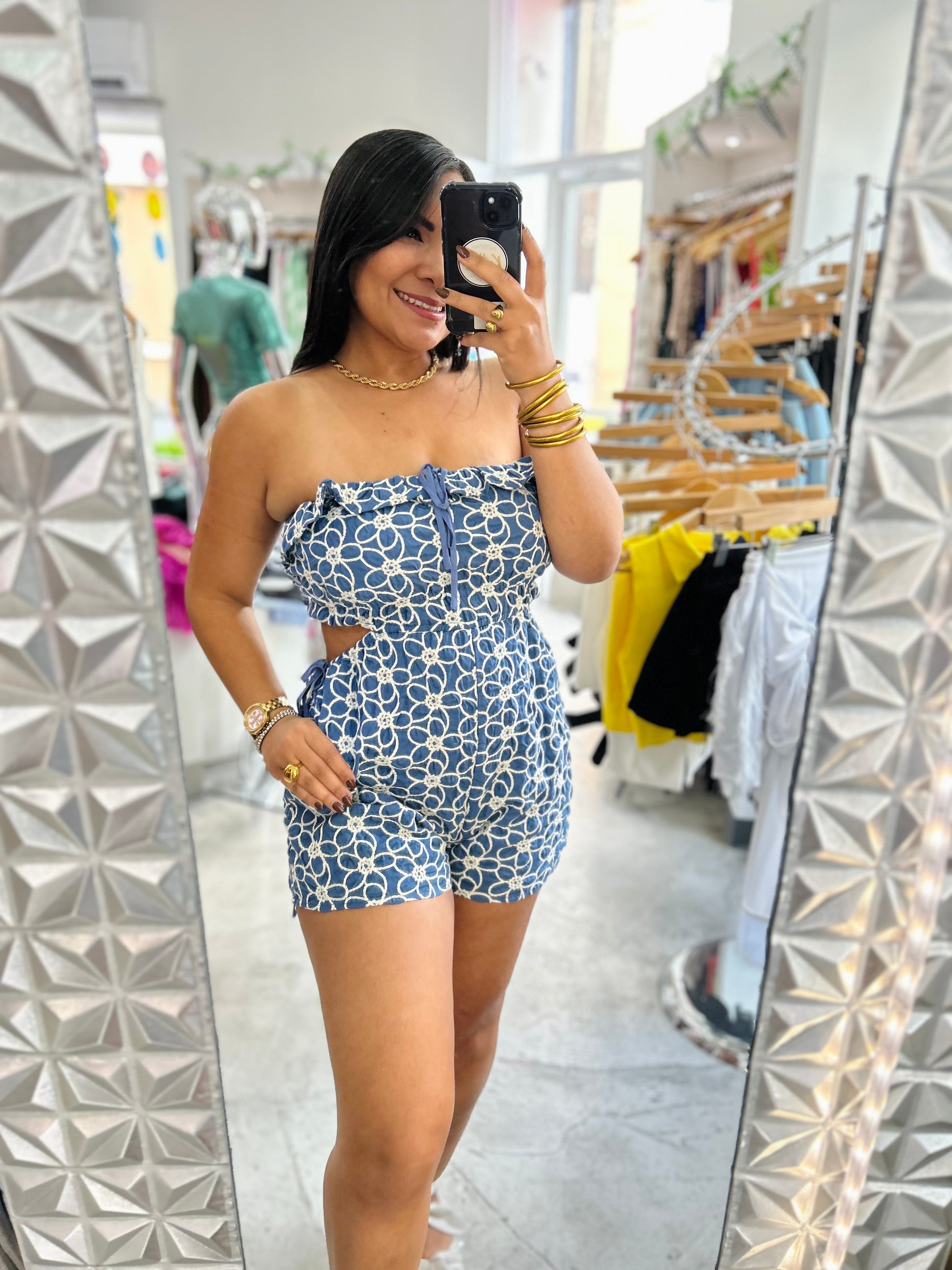 FLOWER DENIM ROMPER